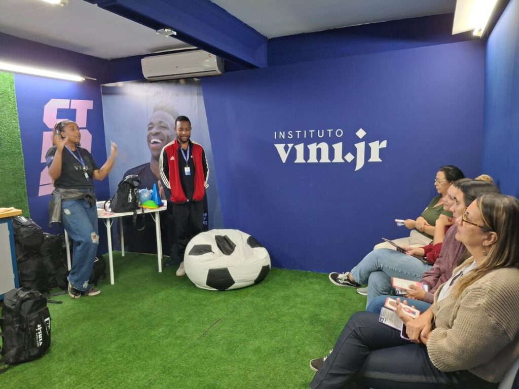 “Para nós, é sempre uma alegria estar na escola, trabalhando com quem faz o jogo acontecer, contribuindo para ampliar as ferramentas das professoras e professores da rede pública de ensino. As formações são, sobretudo, um momento para construir soluções criativas para tornar a escola cada vez mais atrativa e interessante tanto para quem ensina, como para quem aprende.”, avalia Karol Vasconcelos, Diretora Institucional do Instituto Vini Jr.